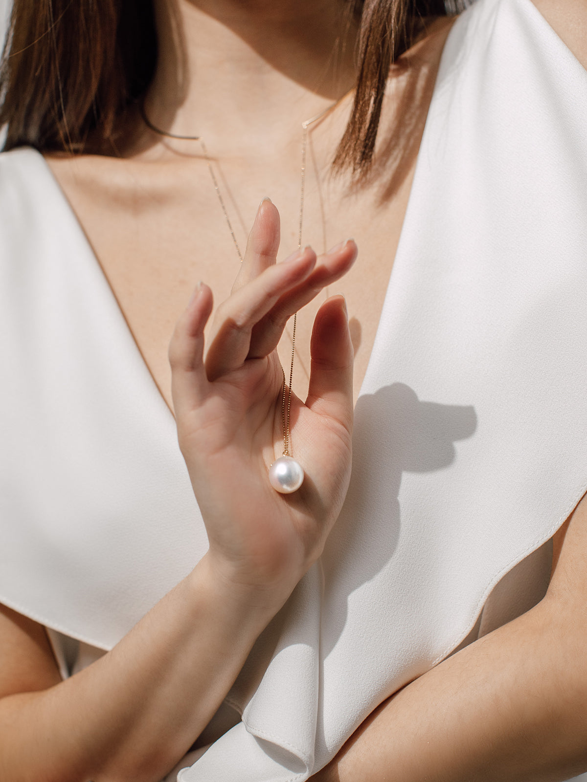 Příběh lásky v sobě doslova nese náhrdelník YANA NESPER LOVE, který díky své variabilitě potěší každou milovnici jemné elegance. Výrazná jihomořská perla se může volně pohybovat jak na pevné obruči, tak na jemném zlatém řetízku, čímž nabízí možnost nosit jej v různých délkách – jak dlouhý, tak krátký.