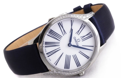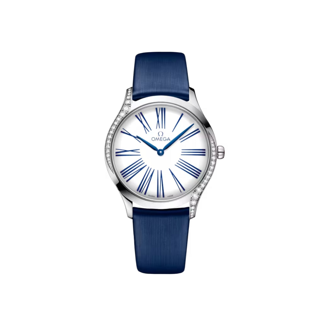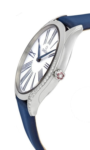 In 2017, Omega introduced the women's version of the De Ville Trésor, whose face was Kaia Gerber, daughter of Cindy Crawford. In this way, Omega clearly set an example of the importance of tradition and family. The watches of this special women's edition are available in case sizes of 36 and 39mm, decorated with two lines of diamonds around the circumference. The dial is complemented by distinctive Roman indexes and the crown also features one central diamond set in the surrounding red ceramic. The color options are red and blue, while lovers of classics can choose the black or nude version. The watch takes into account women's comfort and is available only in a battery-powered version with leather straps that can be changed. The back of the watch surprises with a discreet mirror.