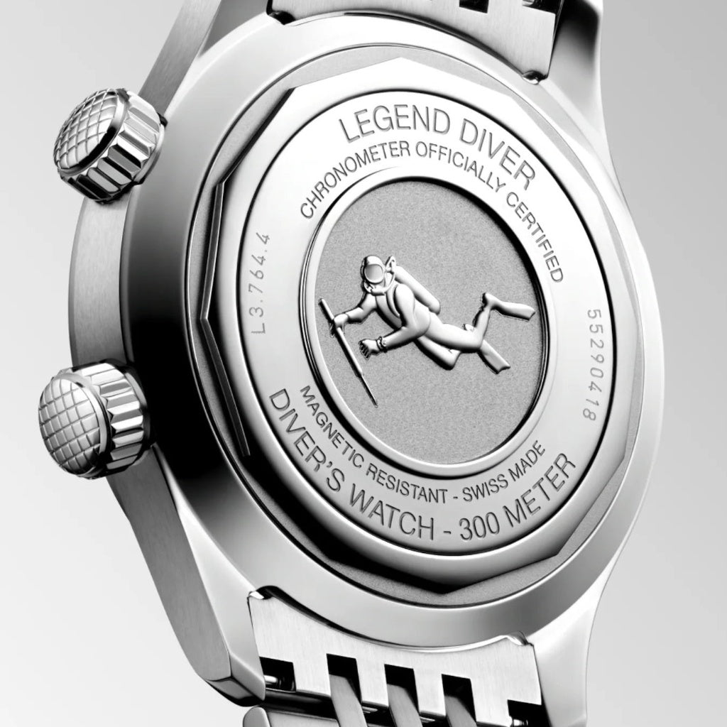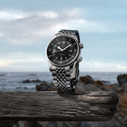 Longines Legend Diver je pánské potápěčské hodinky s ocelovým náramkem a spona typu "beads of rice", která získala svůj název díky centrálním článkům, které připomínají zrna rýže. Ocelový pouzdro s kombinací broušených a leštěných povrchů má průměr 39 milimetrů. Hodinky mají dvě korunky – jedna na pozici 4. hodiny slouží k nastavení času a druhá na pozici 2. hodiny k nastavení otočného lunety.