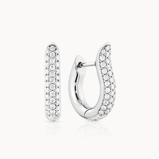 Tamara Comolli náušnice GYPSY jsou z bílého 18karátového zlata. Okouzlují jemně třpytivými diamanty zasazenými střídavě a jednotlivě. Jako překvapivý efekt potěší pokračující diamantový vzor také na vnitřní straně, což obzvlášť zdůrazňuje lásku k detailu.