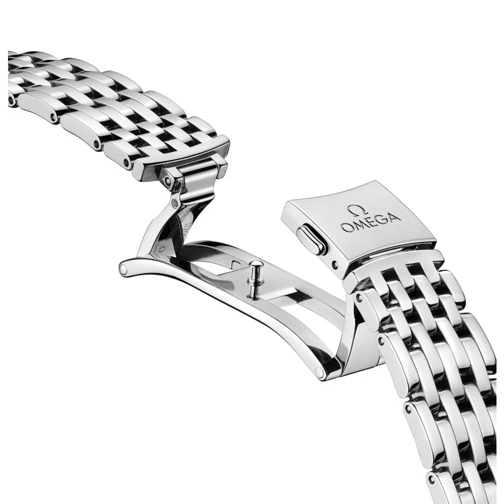 This watch is presented on a stainless steel bracelet and is powered by the OMEGA Quartz Calibre 4061 movement with a battery life of at least 48 months.