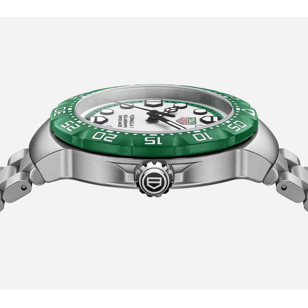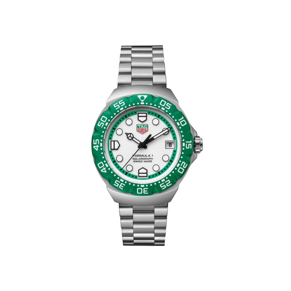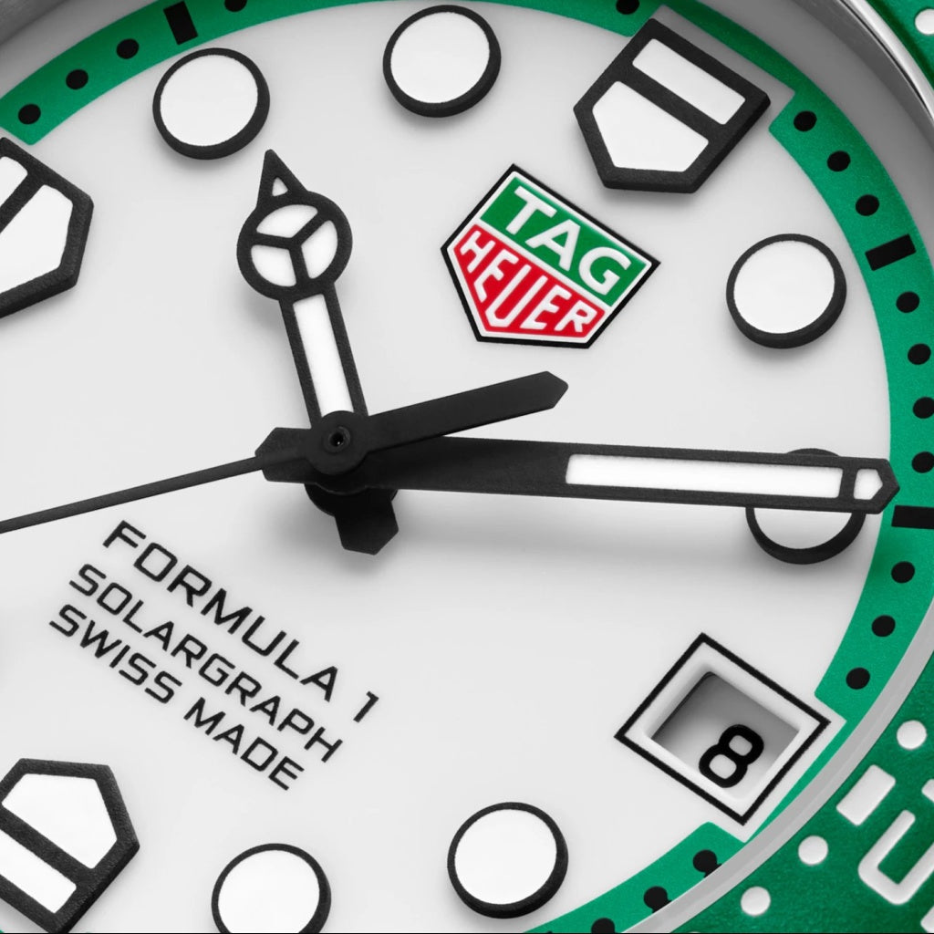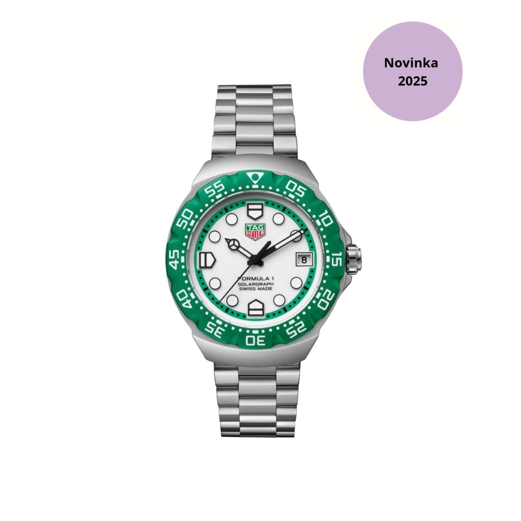 Hodinky TAG Heuer Formula 1 Solargraph (38 mm) s výraznými zelenými akcenty a pokročilou technologií Solargraph vnášejí do kolekce novou energii. Tyto exkluzivní hodinky, které se honosí moderním designem, v sobě spojují inovaci a všestrannost moderního dne. Jedná se o limitovanou edici v počtu 3000 kusů pro celý svět.