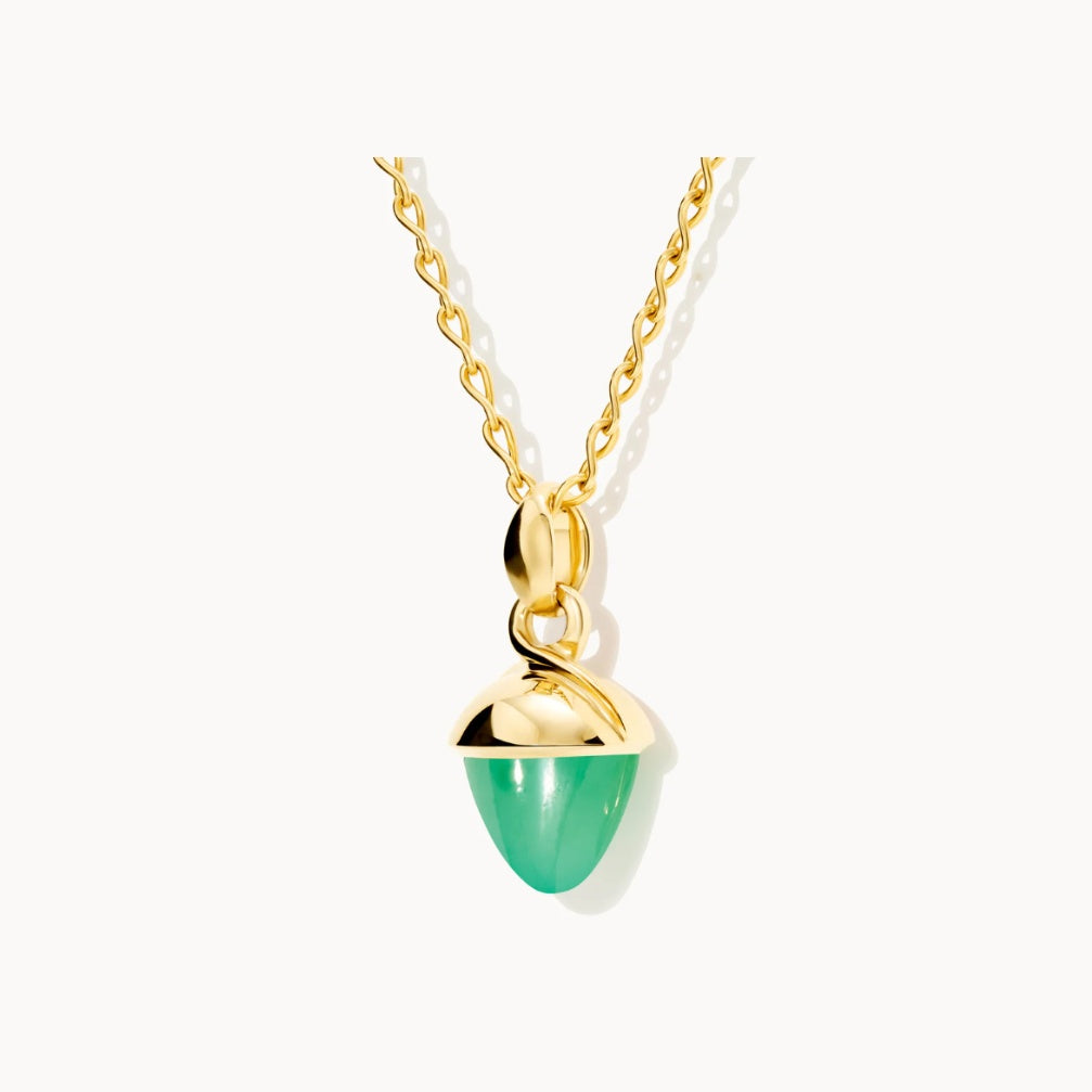 The iconic MIKADO Bouquet pendant features a stunning, rare chrysoprase in our popular acorn shape. This medium-sized pendant is set in 18k gold and is available in a variety of beautiful gemstone combinations that collectors will love to mix and match. Wear it on one of our shimmering gold chains or on a leather cord or elegant look.
