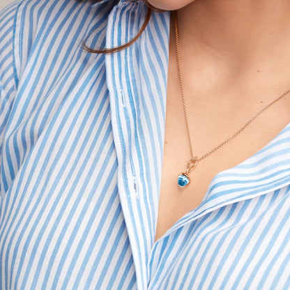 The iconic MIKADO Flamenco pendant features a beautiful precious topaz in our popular cone shape. This small pendant is set in 18k gold and is available in many other beautiful gemstone combinations, making it an enticing collector's item. Wear it on one of our quality chains or leather straps.