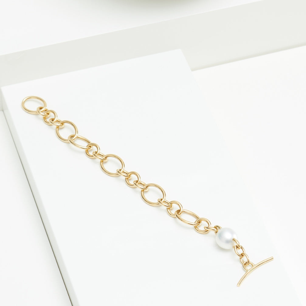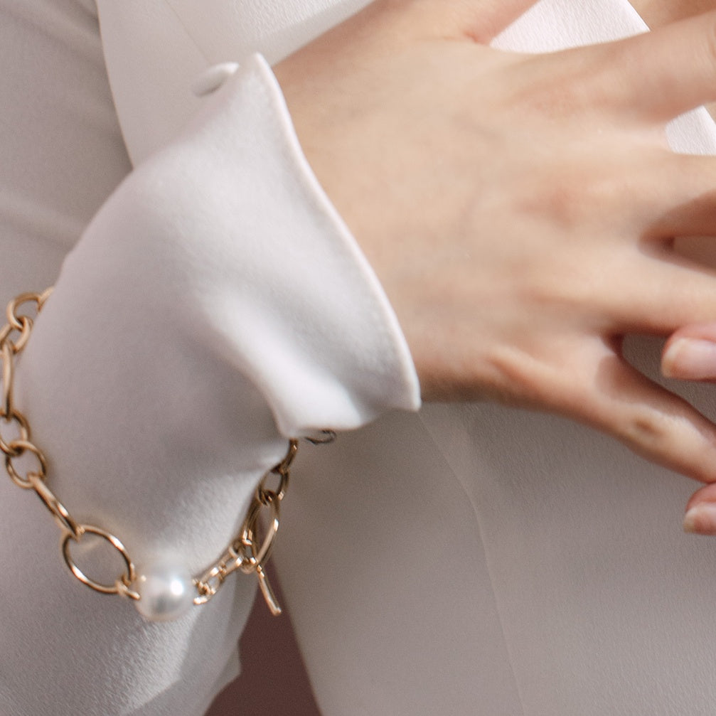 Právě kontrastní kompozice činí tento zlatý náramek, oceněný cenou „German Design Award“, tak žádoucím. Pečlivě zpracovaná a vyvážená kombinace třpytivé perly z Jižního moře s ležérními články řetízku z 18karátového žlutého zlata učinila tento náramek vítězem v kategorii Excellent Product Design.