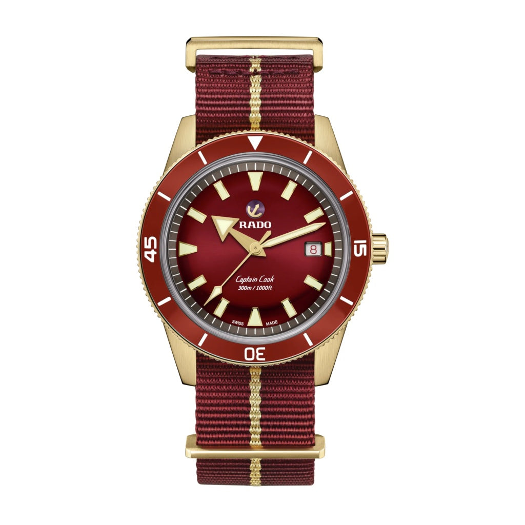 Originální vzhled z roku 1962 ožívá v nové a vylepšené podobě hodinek pro 21. století. Vintage detaily a výraz je věrný originálu. Ideální časomíra pro moderní uživatele. Captain Cook jsou navržené tak, aby obstály ve zkoušce času. Pouzdro tohoto modelu je vyrobené ze slitiny bronzu. Je tak dokonalou kombinací starodávných a moderních materiálů. Safírové sklo je velmi odolné proti poškrábání, jednosměrně otočná luneta pomáhá odměřovat kratší časové úseky. Červený NATO strap je velice příjemný a lze si dokoupit i další barevné kombinace nebo kožené řemínky. Nositel hodinek si pak řemínek snadno vymění díky "easy clip systému". Rado Captain Cook se jistě stane oblíbeným společníkem na cestách i při denním nošení.