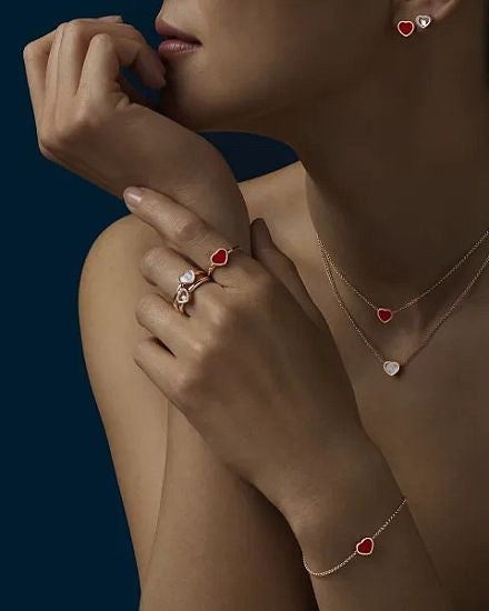 Kolekce šperků My Happy Hearts si vypůjčila své nejznámější kódy, srdce a mobilní diamanty, z legendárních výtvorů značky Chopard. Motivy srdcí na prstenech z etického růžového zlata My Happy Hearts tvoří jemné souhvězdí, které lze nosit samostatně nebo poskládané jako stylový doplněk. Me, Myself a My Happy Hearts.
