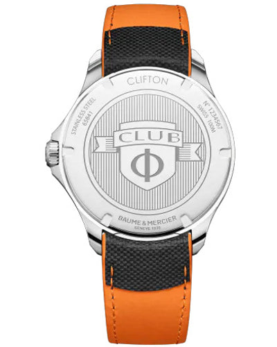 Sofistikované a sportovní hodinky Clifton Club 10411 jsou 42mm hodinky s datem a nezaměnitelným moderním designem. Hodinky jsou dodávány s černým řemínkem a elegantním černým ciferníkem, se kterým kontrastuje oranžově zbarvená vteřinová ručička a lemování po obvodu ciferníku. Díky neotáčivému rámečku z ušlechtilé oceli, klasické funkci data a samosvítícím ručičkám Superluminova® s odpovídajícími časovými značkami jsou tyto hodinky poháněné quartzovým strojkem oblíbené mezi těmi, kdo touží po výzvě profesionálních ambicí i sportovního ducha.