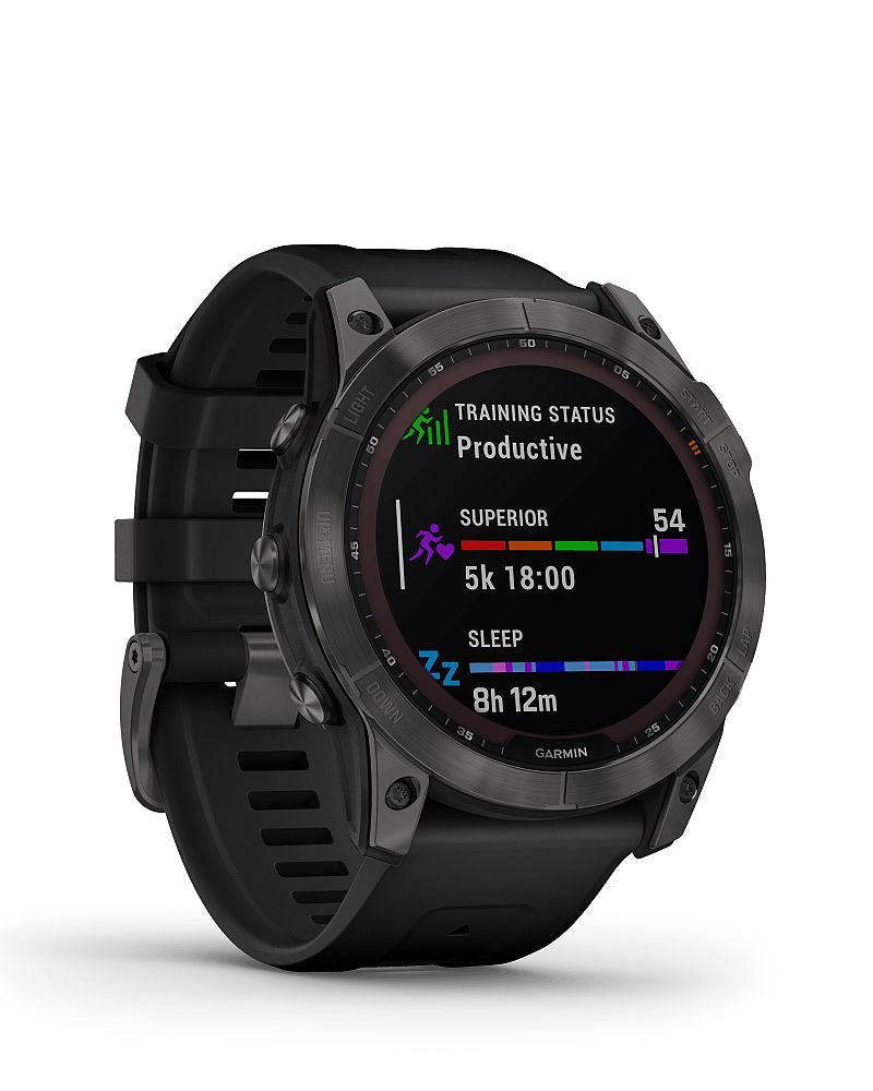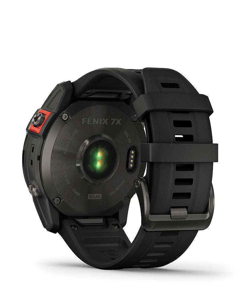 Kultovní pánské GPS hodinky Garmin fenix 7X 010-02541-01 Solar Edition s 1,4" displejem krytým solárním sklíčkem, ocelovou lunetou, tělem z tvrzeného polymeru a silikonovým řemínkem. Voucher na mapu Topo Czech PRO v balení. Největší model z řady hodinek Fénix 7. Hodinky jsou vybavené tvrzeným Gorilla Glass 3 sklíčkem s hybridním solárním dobíjením zajišťujícím prodlouženou výdrž baterie. Ocelová luneta v tmavě šedé barvě se pro vyšší odolnost upravuje povrchovou úpravou PVD. Tmavě šedé pouzdro hodinek doplňuje černý silikonový pásek vhodný pro sportovní i celodenní nošení. Transflektivní MIP displej s velikostí 1,4 palce (36 mm) a rozlišením 280x280 pixelů vyniká zejména se svým úžasným kontrastem a čitelností na slunci. Napomáhá také skvělé výdrži hodinek. V režimu podrobného záznamu GPS aktivity činí výdrž až 122 hodin a v režimu chytrých hodinek až 37 dní. V ceně jsou také TopoActive mapy světa, lyžařské SkiView a voucher na stažení Topo Czech PRO. Hodinky jsou párovatelné s dalším příslušenstvím Garmin a s chytrými telefony Android a iOS.