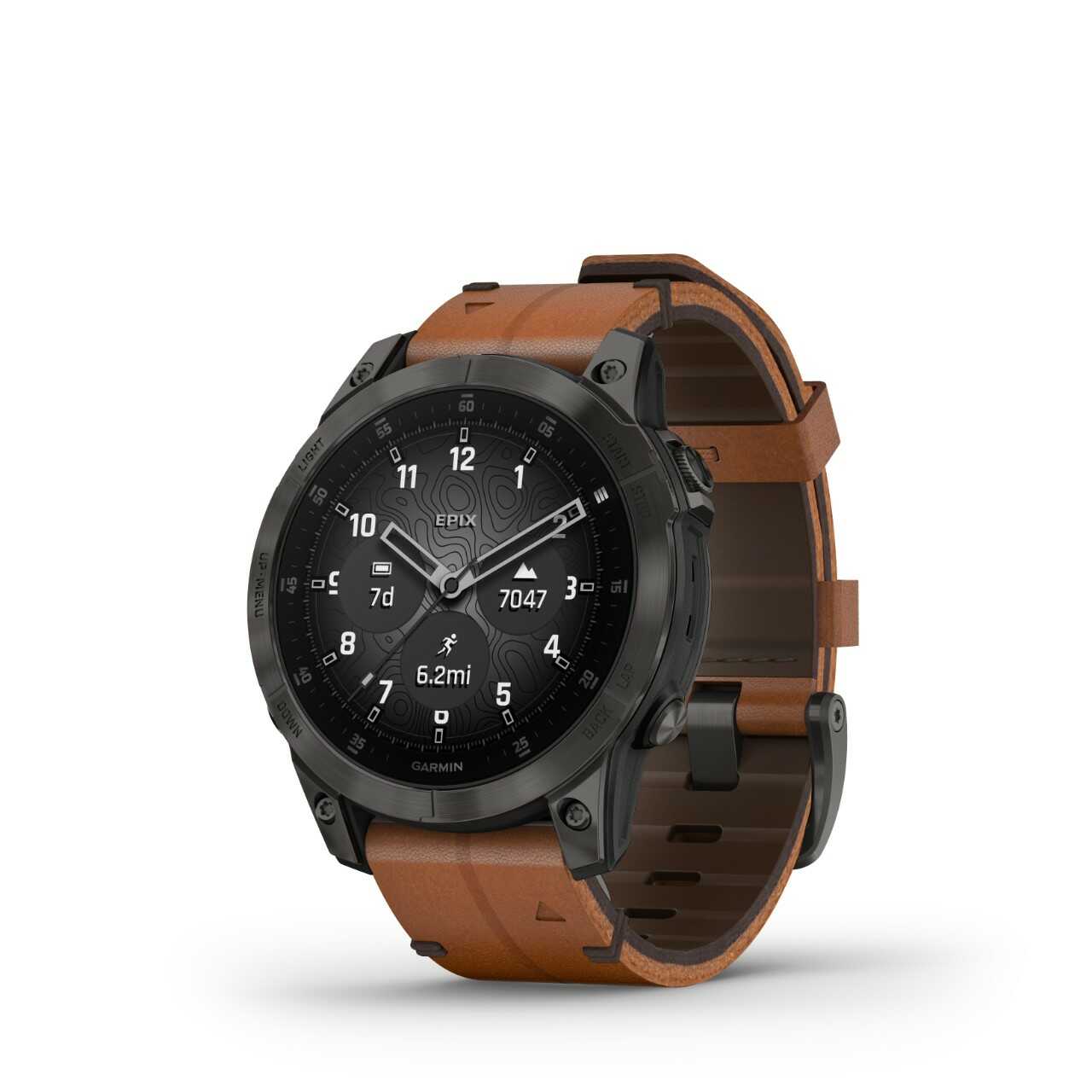 Prémiový model hodinek Epix 2 je vybavený vysoce odolným safírovým sklíčkem. Titanová luneta v černé barvě je tvrzena povrchovou úpravou DLC. Černé pouzdro hodinek doplňuje stylový, hnědý kožený řemínek pro běžné nošení a černý silikonový pásek vhodný pro sportovní využití. Hodinky disponují multiband GPS přijímačem dosahujícím vyšší přesnosti a lepší příjmové vlastnosti v místech s omezeným výhledem oproti běžným GPS přijímačům. AMOLED displej s velikostí 1,3 palce (36 mm) a rozlišením 454x454 pixelů vyniká zejména se svými nádhernými a živými barvami. V režimu podrobného záznamu GPS aktivity činí výdrž baterie až 42 hodin a v režimu chytrých hodinek až 16 dní. V ceně jsou také TopoActive mapy světa, lyžařské SkiView a voucher na stažení Topo Czech PRO. Hodinky jsou párovatelné s dalším příslušenstvím Garmin a s chytrými telefony Android a iOS.