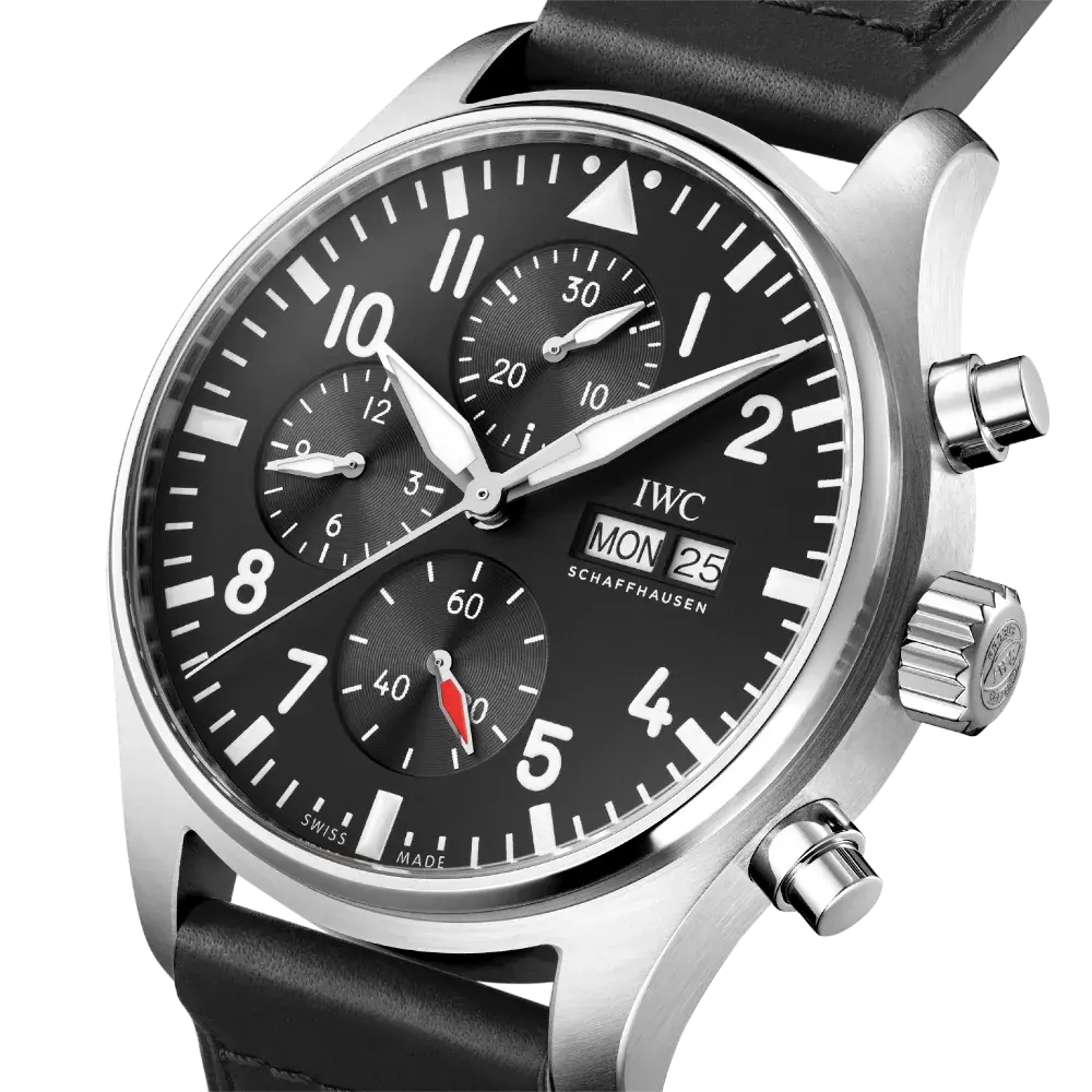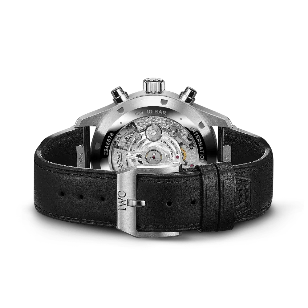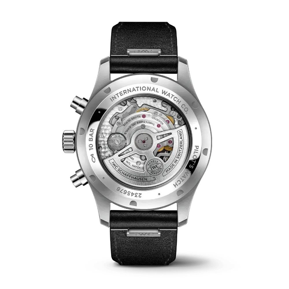 Tyto hodinky mají pouzdro z ušlechtilé oceli o průměru 43 milimetrů, černý číselník a rhodiované ručičky. Vysoce kontrastní číselník s velkými arabskými číslicemi a trojúhelníkovou indexovou značkou na 12. hodině byl navržen ve stylu snadno čitelných přístrojů v pilotní kabině. Díky luminiscenčním prvkům lze čas přečíst na první pohled, a to i v noci nebo za zhoršených viditelnostních podmínek. Manufakturní IWC Schaffhausen kalibr 69385, robustní chronografový strojek, umožňuje měření času v celkovém souhrnu až 12 hodin. Hodiny stopek se zobrazují na sčítači na 9. hodině, minuty na 12. hodině. Malá vteřinovka s červenou vrstvou se nachází na 6. hodině. Samonatahovací strojek s rezervou chodu 46 hodin lze pozorovat přes zadní safírové sklo. Vodotěsnost hodinek činí 10 barů a vyjímají se na černém řemínku z telecí kůže. Díky integrovanému systému EasX-CHANGE® lze řemínek snadno vyměnit bez použití dalších nástrojů.