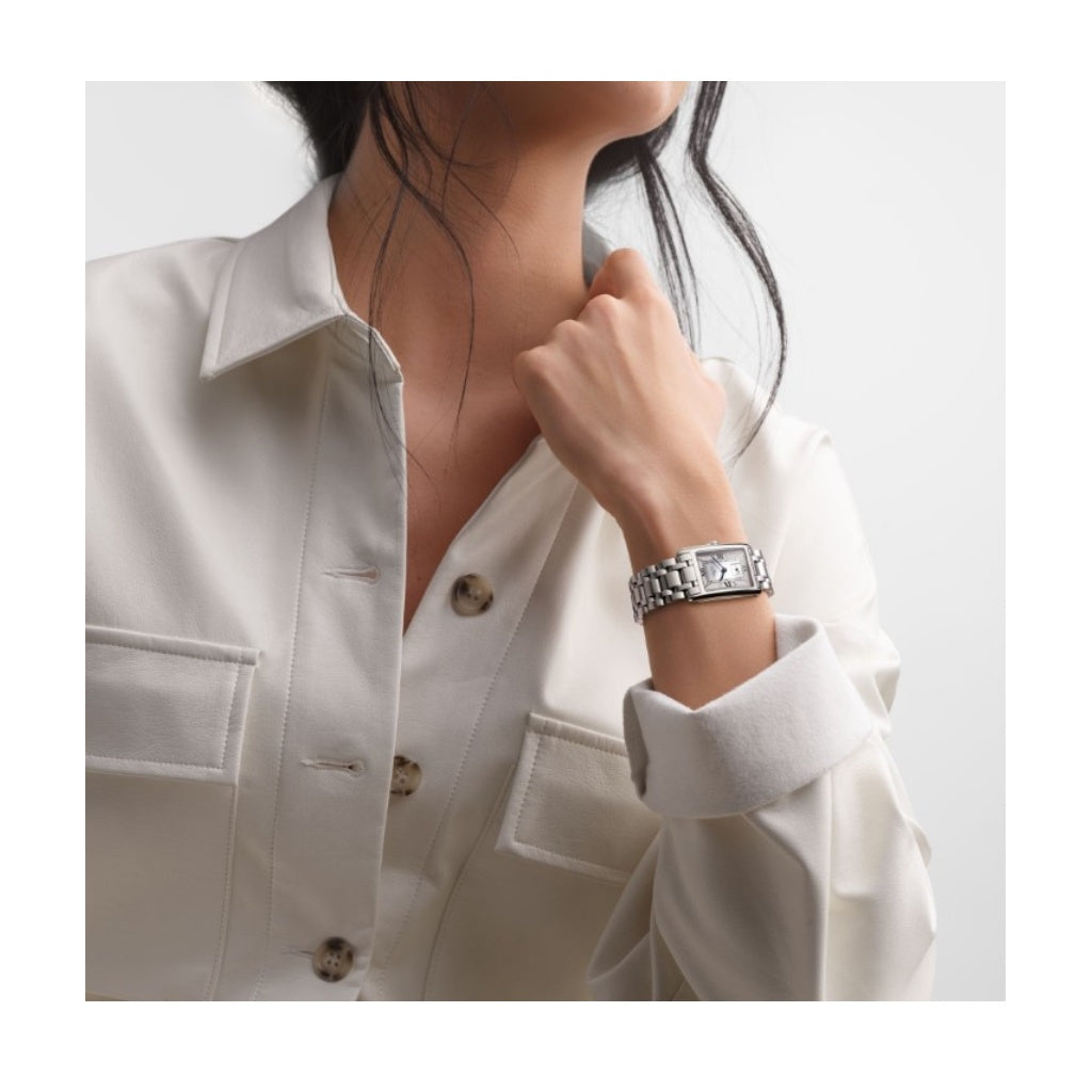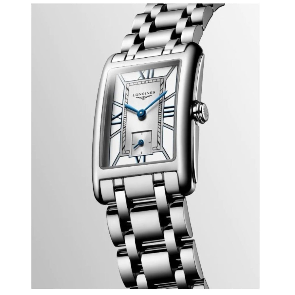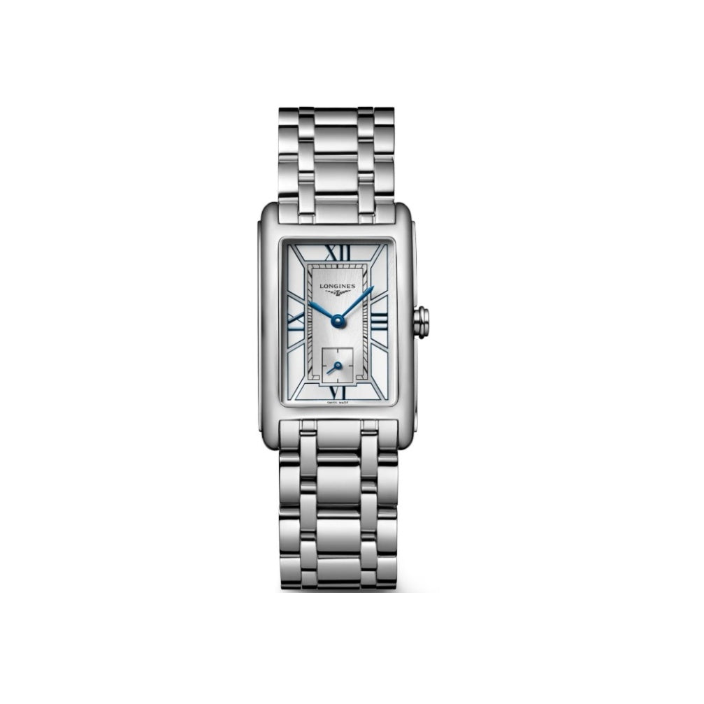 Longines DolceVita jsou elegantní dámské hodinky s klasickým designem, které zdobí pětiřadý náramek z ušlechtilé oceli s motýlkovou sponou. Obdélníkové pouzdro z nerezové oceli má rozměry 23,3 × 37 mm. Stříbrný ciferník s decentně umístěnou vteřinovou ručkou chrání odolné safírové sklíčko. O přesný chod se stará quartzový strojek L176, který je vybaven funkcí indikace slabé baterie. Díky vodotěsnosti 3 ATM hodinky bez problému odolají dešti i běžnému mytí rukou.