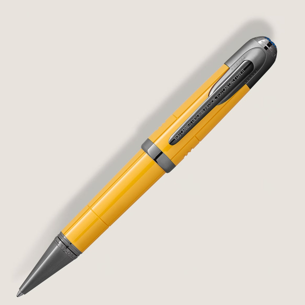 Jméno Ferrari je synonymem pro estetický design, výkonné motory, téměř nekonečné technické inovace a jednoho z nejvlivnějších mužů v historii automobilismu. Díky své obrovské vizi a nespoutané vášni pro motoristický sport dovedl Enzo Ferrari svou společnost k bezkonkurenční prestiži a vytvořil legendu, která žije dodnes. Montblanc věnoval tuto speciální edici Montblanc Great Characters Enzo Ferrari tomuto muži a jeho vášni pro závodění. Inspirována erbem rodného města Enza Ferrariho, Modeny, a symbolickou barvou loga Scuderia, tato edice vzdává hold druhé duši Ferrariho – žluté barvě. Na kuželu jsou vyryta data narození Enza Ferrariho a jeho prvního vítězství v závodě, zatímco na vrcholu víčka je vyryta jeho podpis a název dílny jeho otce „Officina Meccanica Alfredo Ferrari“ odkazující na místo narození Enza Ferrariho. Korunku tvoří emblém Montblanc z drahocenné modré pryskyřice – jako další pocta erbu Modeny – obklopený složitou kovovou výzdobou připomínající mřížku veteránu.