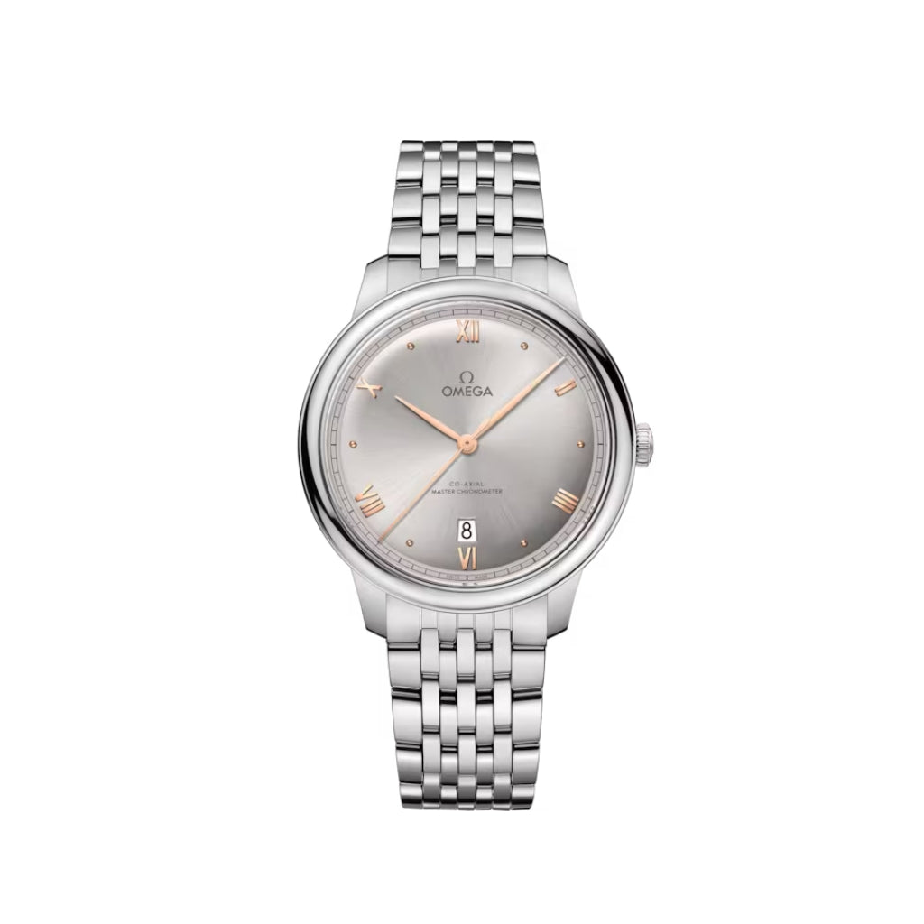 Nadčasová kolekce OMEGA De Ville Prestige, která vznikla v roce 1994, se dočkala své třetí generace. Hodinky, které i nadále představují klasický design a vytříbenou eleganci. Nabízejí řadu vzorů, povrchových úprav a barev, které vyhovují různým životním stylům a osobnostem. U tohoto modelu z ušlechtilé oceli o průměru 40 mm má klenutý šedý ciferník s rhodiovanou povrchovou úpravou, která je slunečně broušená. Ciferník se vyznačuje ručičkami v barvě PVD Sedna™ Gold a střídajícími se římskými číslicemi a kabošonovými indexy. Čistý vzhled hodinek dotváří okénko s datumovkou na 6. hodině a minutová stupnice na vnějším pásmu. Tyto hodinky s certifikací Master Chronometer jsou prezentovány na náramku z ušlechtilé oceli a pohání je kalibr OMEGA Master Co-Axial 8800, který lze obdivovat přes zadní safírové sklo odolné proti poškrábání.