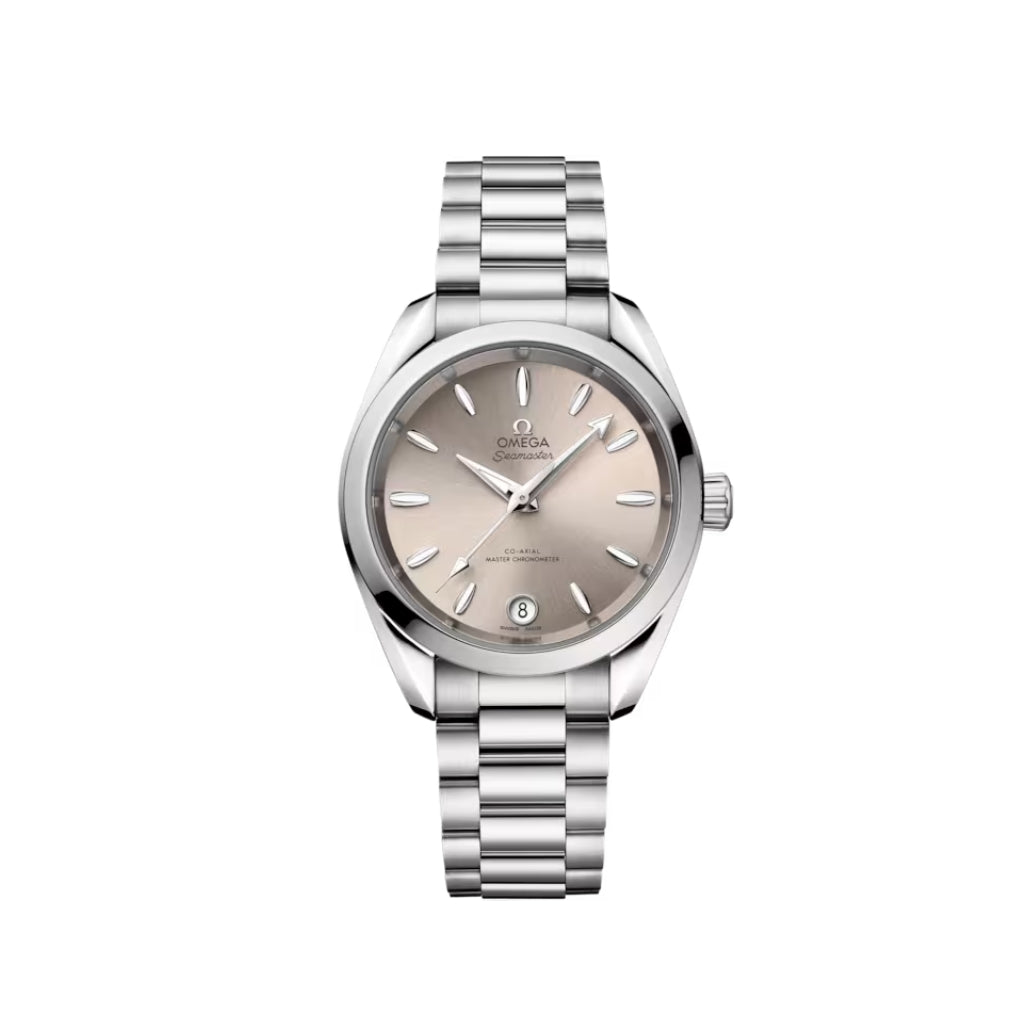 Modelová řada hodinek Aqua Terra tvoří jednoznačně nejelegantnější skupinu ze všech Seamasterů. Jak již název napovídá, jsou to hodinky tak trochu obojživelné. Všem hodinkám této řady proto nechybí vodotěsnost 150 metrů a možnost pořídit si je na ocelovém náramku i na kaučukovém pásku. Omega se rozhodla u těchto nových modelů pro rok 2022 svojí nabídku rozzářit s jasnými barevnými číselníky se slunečním broušením. Velikost pouzdra 34 mm je určena výhradně pro dámy. To podtrhují i ručičky a indexy, které jsou z 18 karátového bílého zlata. Právě v hodinkách této řady Omega v roce 2013 poprvé představila model, který odolá magnetickému poli 15000 gaussů. I přesto si Aqua Terry zachovávají čistý a jednoduchý design spolu s nižší váhou a ne příliš mohutným pouzdrem.