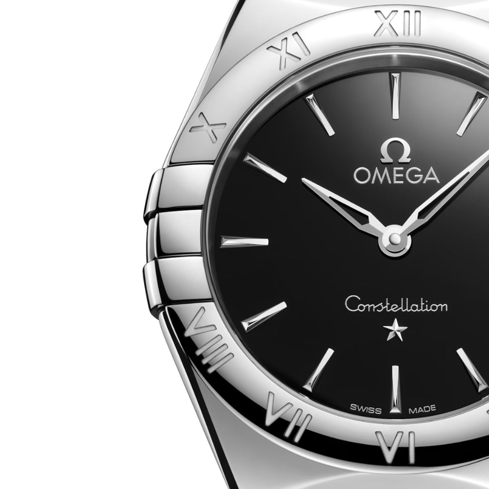 Ikonický model OMEGA Constellation, jehož přesnost je inspirována hvězdami, se vyznačuje slavným pouzdrem s půlměsícovými fazetami a leštěnými drápky, které se zachytávají po stranách.