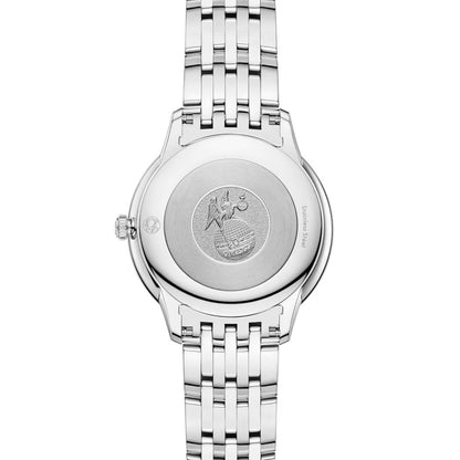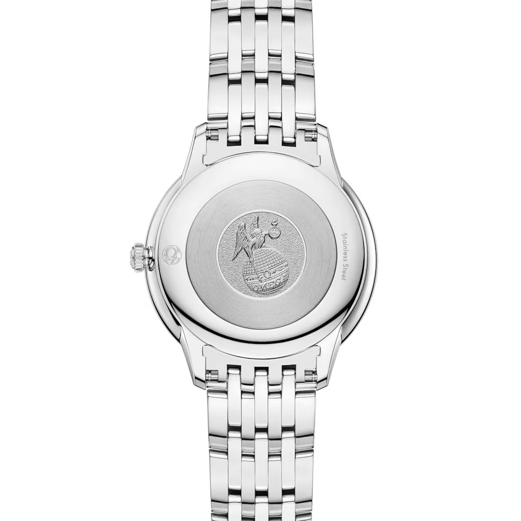 V tomto 30mm modelu z ušlechtilé oceli je rhodiovaný šedý ciferník opatřen křišťálovou úpravou. Displej se vyznačuje ručičkami v barvě PVD Sedna™ Gold a střídajícími se římskými číslicemi a kabošonovými indexy.