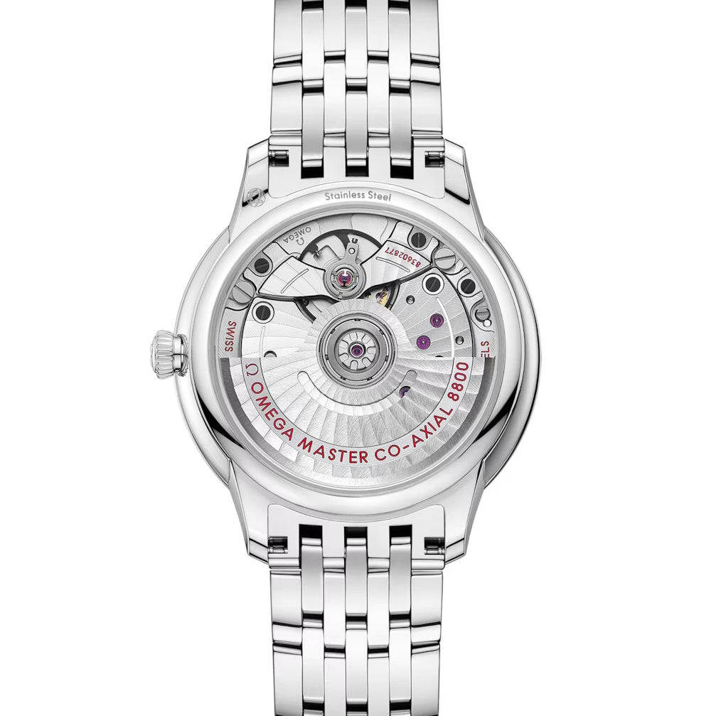 Tyto hodinky s certifikátem Master Chronometer jsou vybaveny nerezovým náramkem a poháněny kalibrem OMEGA Master Co-Axial 8800, který lze obdivovat přes zadní kryt z odolného safírového skla.