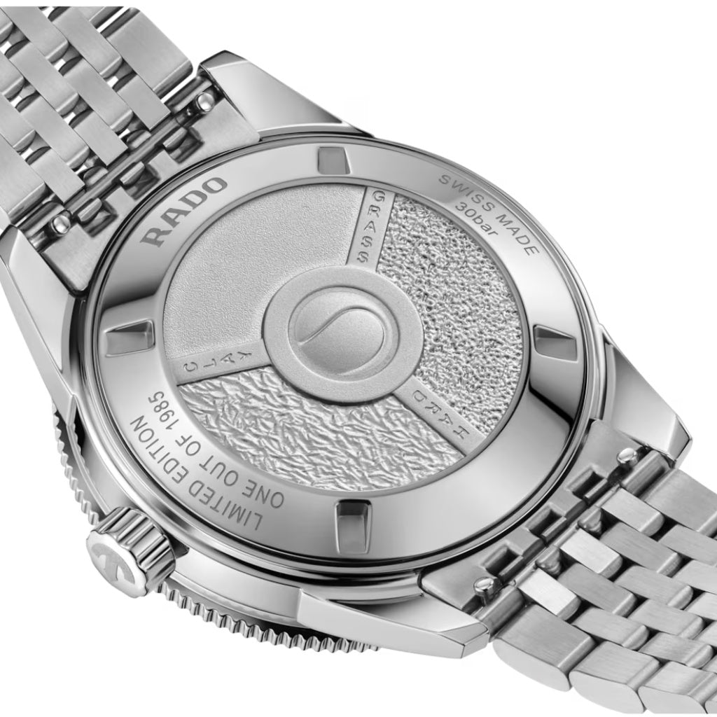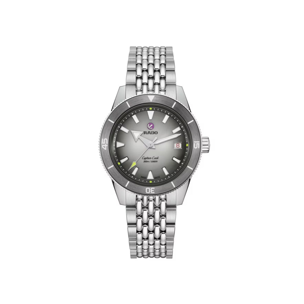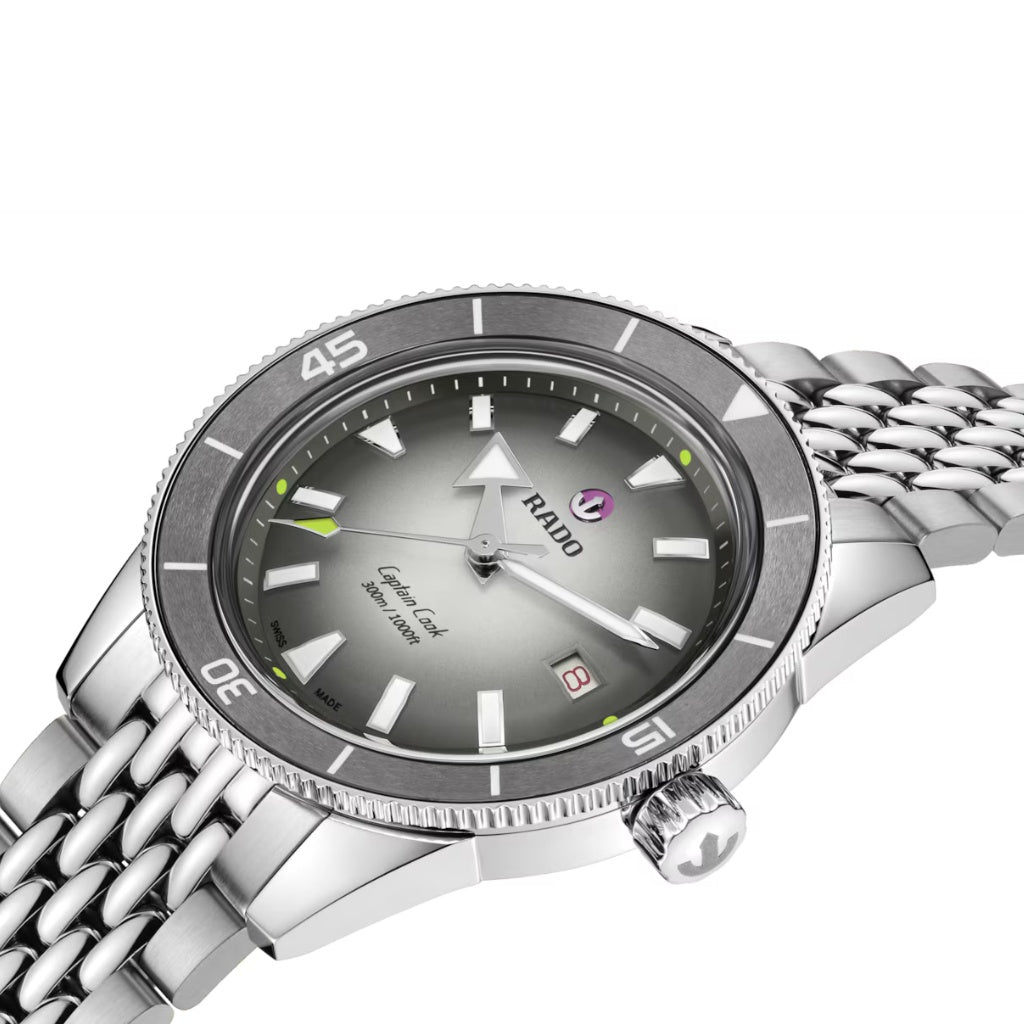 Na oslavu 40 let tenisového partnerství představuje Rado limitovanou edici Captain Cook x Tennis - poctu prvnímu významnému sponzorství značky na Swiss Open 1985 ve Gstaadu. Hodinky jsou limitované na 1 985 kusů a odrážejí odkaz přesnosti, výkonu a trvalých vazeb ke sportu. Pouzdro z leštěné ušlechtilé oceli o průměru 39 mm je spojeno s otočnou lunetou z leštěné ušlechtilé oceli a kartáčovanou plazmovou keramickou vložkou s vyrytými číslicemi, značkami a trojúhelníkem vyplněným bílou Super-LumiNova®. Pouzdro je vodotěsné do 30 barů (300 metrů), což podtrhuje jeho připravenost pro výkonné nošení. Jeho jádro tvoří automatický strojek Calibre R763, který byl vyvinut pro nekompromisní spolehlivost.