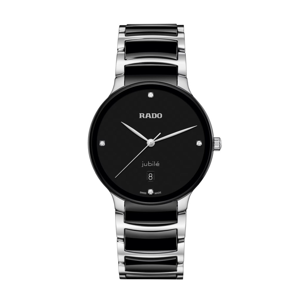 Klasické hodinky Centrix Quartz Diamonds byly přepracované nejen po technické, ale i po estetické stránce. Upravený model má zaoblené safírové sklíčko, které zasahuje až k okraji, a také zakřivené pouzdro splývající se zakřiveným okrajem sklíčka. Pouzdro a náramek je vyrobený z leštěné ušlechtilé oceli s černými high-tech keramickými středovými články. A dotvářejí tak celkový vzhled těchto ikonických hodinek. Černě lakovaný číselník se čtyřmi diamanty, zvýrazněný tištěným logem "jubilé", dokonale ladí s ručičkami v barvě rhodia. Díky funkcím PreciDrive a HeavyDrive v quartzovém strojku kalibru R073 mají hodinky vyšší přesnost a odolnost vůči nárazům. Hodinky jsou vodotěsné do hloubky 50 m.
