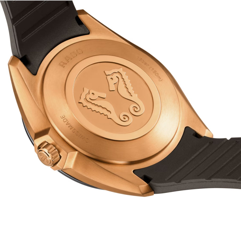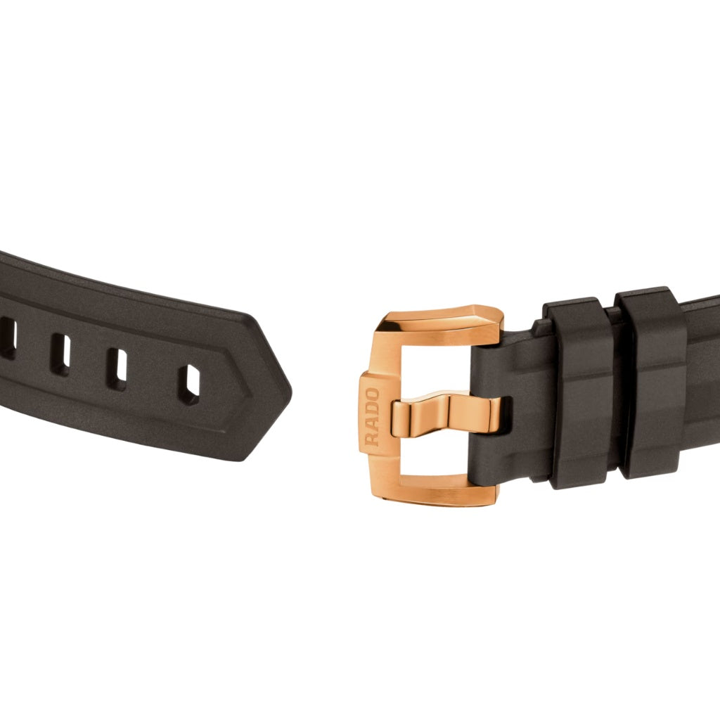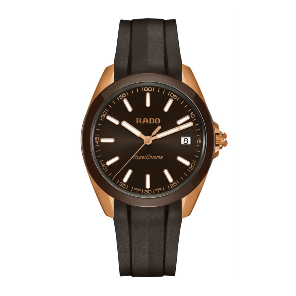 Hodinky HyperChrome Quartz jsou moderním vyjádřením preciznosti a mistrovství v oblasti materiálů, které kombinují pokročilou hodinářskou technologii s odvážným a trvalým designem. Pouzdro, vytvarované z leštěné a kartáčované nerezové oceli s PVD vrstvou v barvě růžového zlata, je obklopeno leštěnou hnědou high-tech keramickou lunetou.
