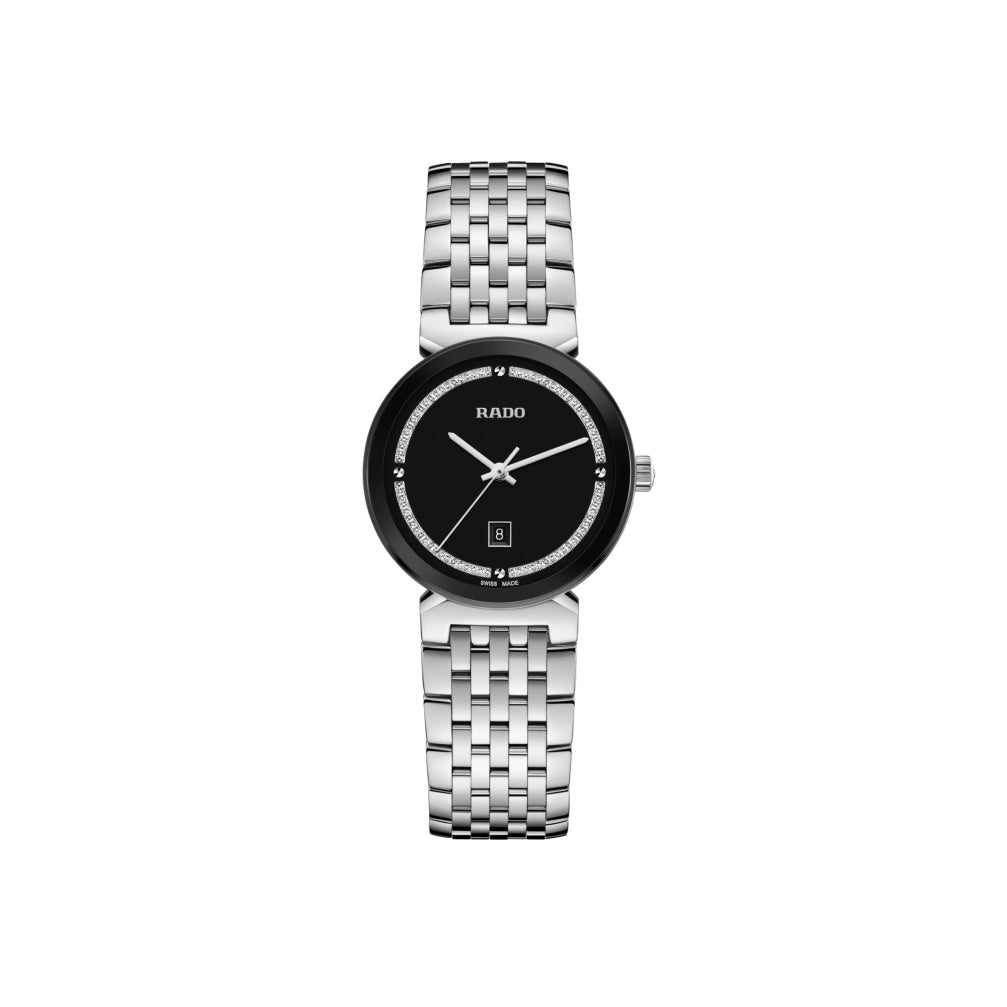 Harmonický design hodinek Rado Florence připomíná elegantní kopule a věže města, od kterého je odvozen název kolekce. Tyto hodinky pohání spolehlivý tříručičkový strojek Quartz Rado kalibr R079, který zajišťuje vyšší přesnost a odolnost vůči nárazům. Hodinky o průměru 30 mm mají od okraje k okraji zkosené, zakřivené safírové sklíčko. Hodinky se mohou pochlubit leštěným pouzdrem, korunkou, rámečkem a zadní stranou pouzdra z nerezové oceli. Náramek z leštěné nerezové oceli dotváří celkový vzhled těchto klasických hodinek. Černý ciferník s rhodiovaným třpytivým dekorem, zvýrazněný tištěným logem „Rado“ stříbrné barvy, dokonale ladí s ručičkami v barvě rhodia. Hodinky jsou vodotěsné do 50 m a jsou k dispozici také ve velikosti L, což z nich činí ideální hodinky pro páry.