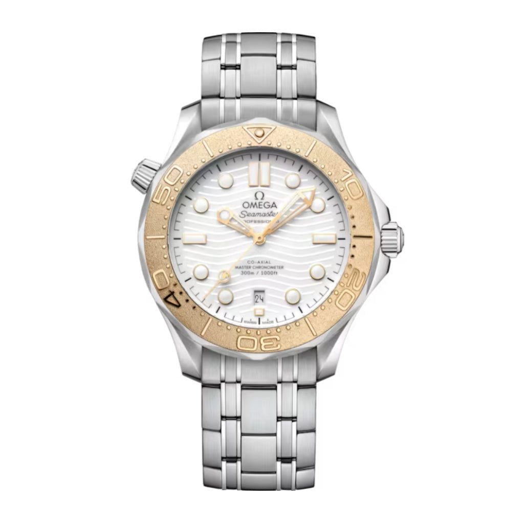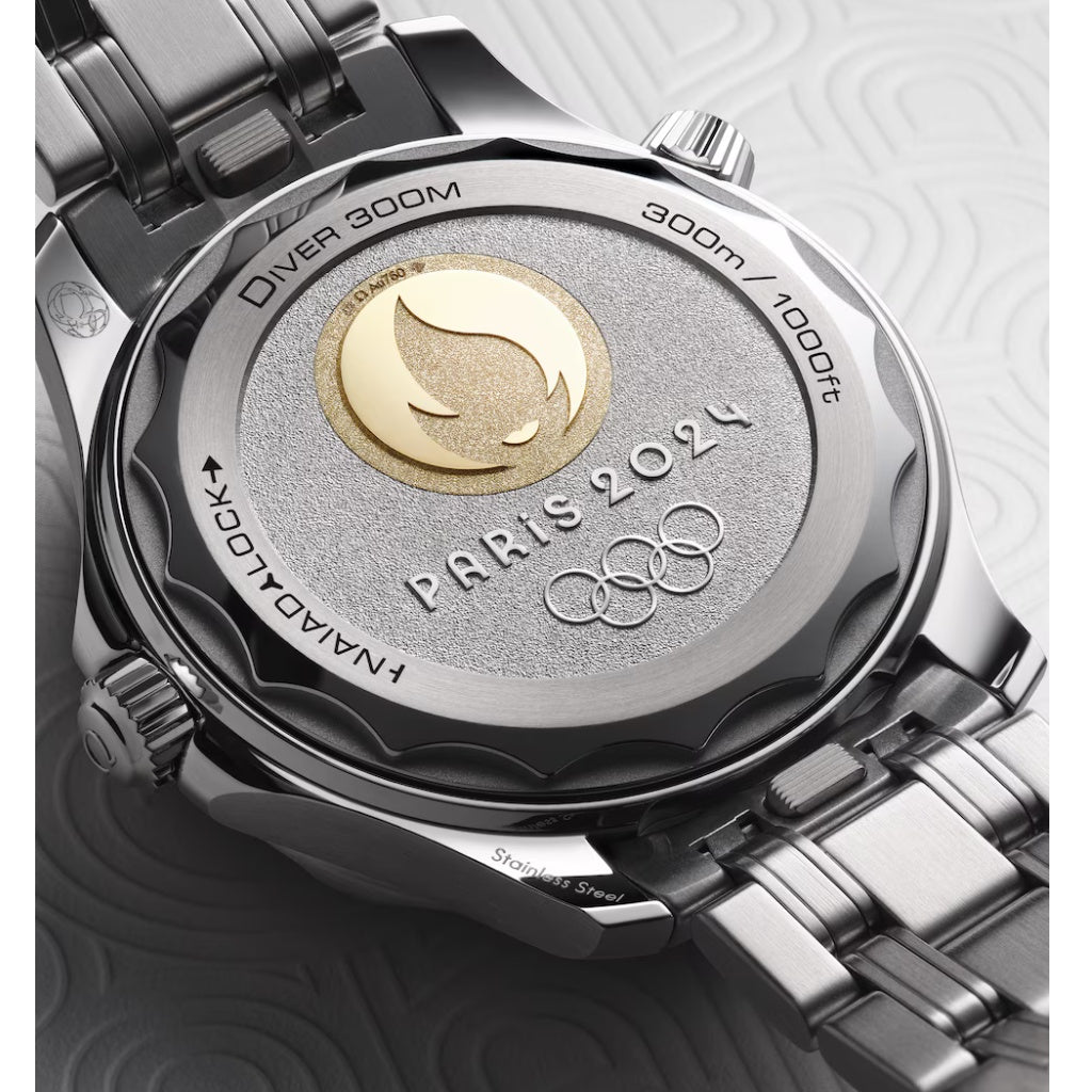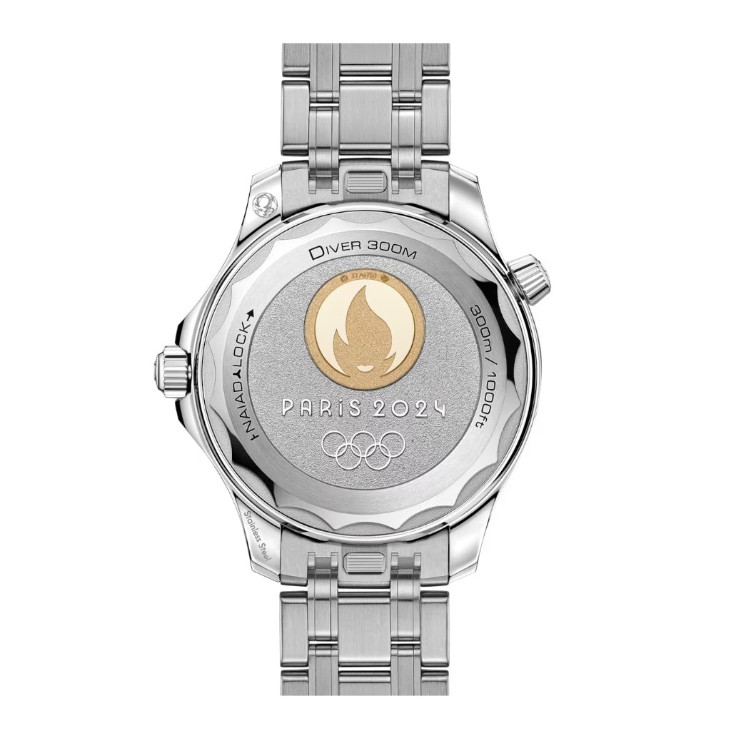 Olympijské hry v Paříži 2024 budou již po jednatřicáté od roku 1932, kdy OMEGA plní důležitou roli oficiálního časoměřiče na olympijských hrách. Na oslavu této historické události nabízí tento speciální model Seamaster Diver 300M sportovní design v bílé, zlaté a černé barvě - podle oficiálního olympijského barevného schématu. Pouzdro o průměru 42 mm je vyrobeno z ušlechtilé oceli a 18karátového zlata Moonshine™ a jeho rámeček je opatřen laserově strukturovanou potápěčskou stupnicí v pozitivním reliéfu a jedinou tečkou Super-LumiNova na 12. hodině.