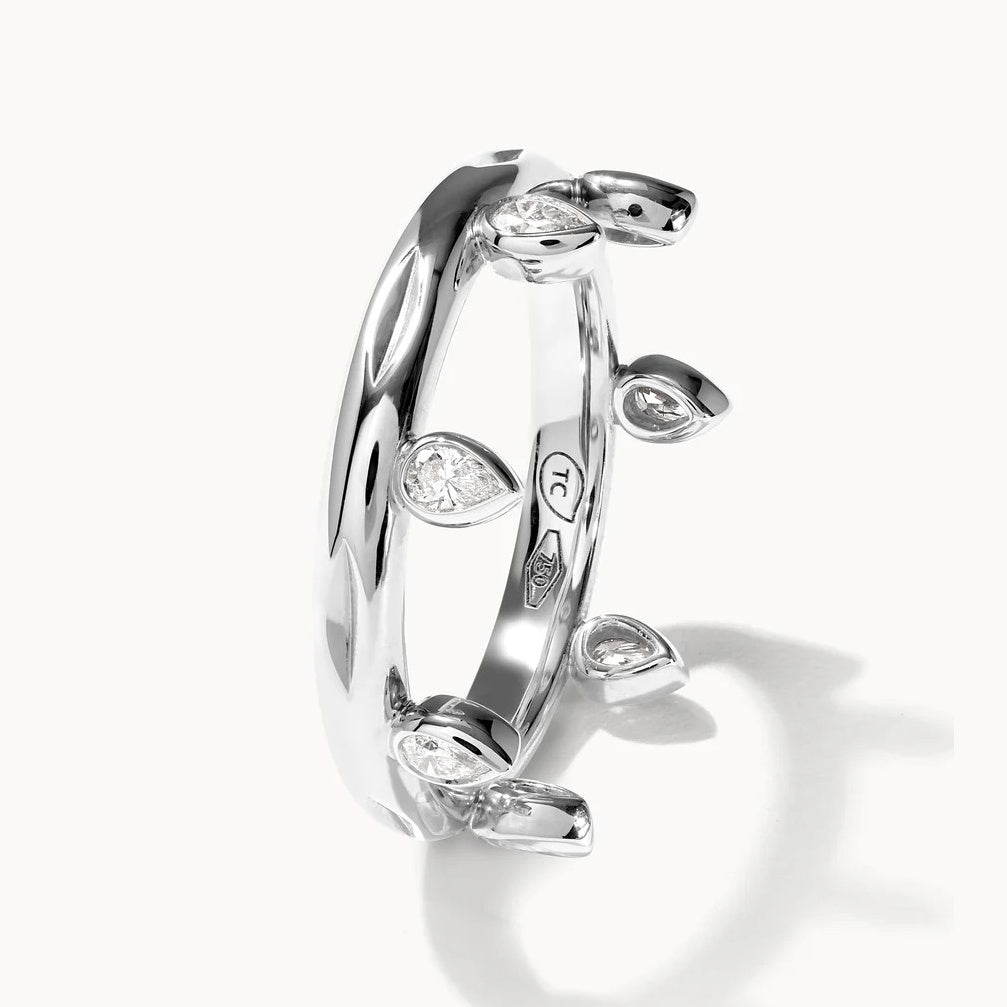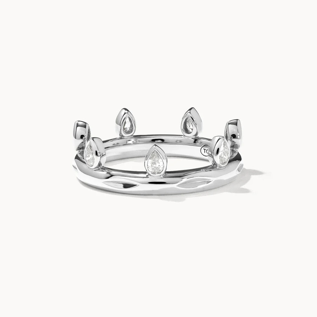 Prsten GYPSY Drop Cut Classic z 18karátového bílého zlata představuje symbol naší značky s brilianty ve tvaru kapky. Postranní umístění drahých kamenů umožňuje snadné stohování jednotlivých prstenů GYPSY. Při nošení dovnitř tak vzniká fantasticky klasická silueta, zatímco při nošení ven vytvářejí diamanty zcela nový vzhled.