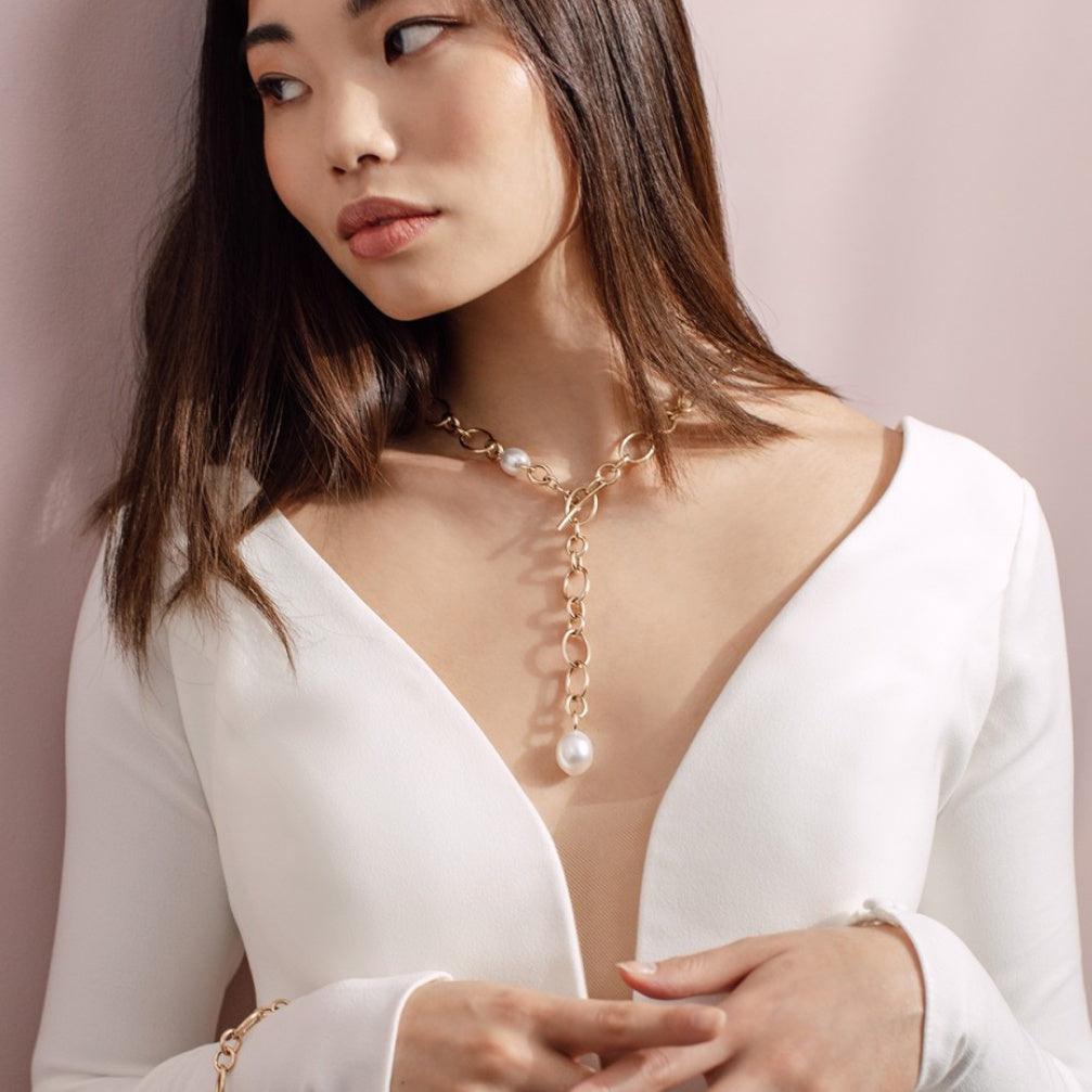 Tento náhrdelník z jihomořských perel, oceněný cenou „German Design Award“, splňuje všechna přání, pokud jde o luxus, úchvatnou nositelnost a zářivost. Díky svému promyšlenému designu nabízí náhrdelník z perel různé možnosti nošení a je tak ideální pro vrstvení. Velká jihoamerická perla na konci je vrcholem tohoto mimořádného designu.